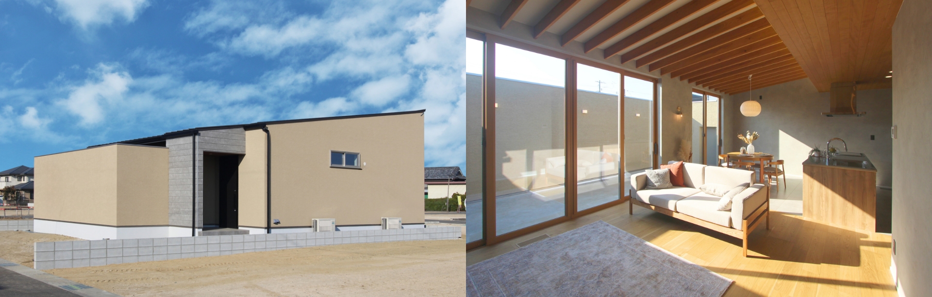 福山市 駅家町万能倉 Welcome! 階段のない暮らし。家事も子育ても、まっすぐに。MODELHOUSE “等身大の平屋” モデルハウス。平屋 3LDK+WIC+中庭